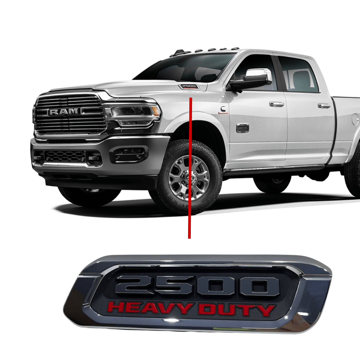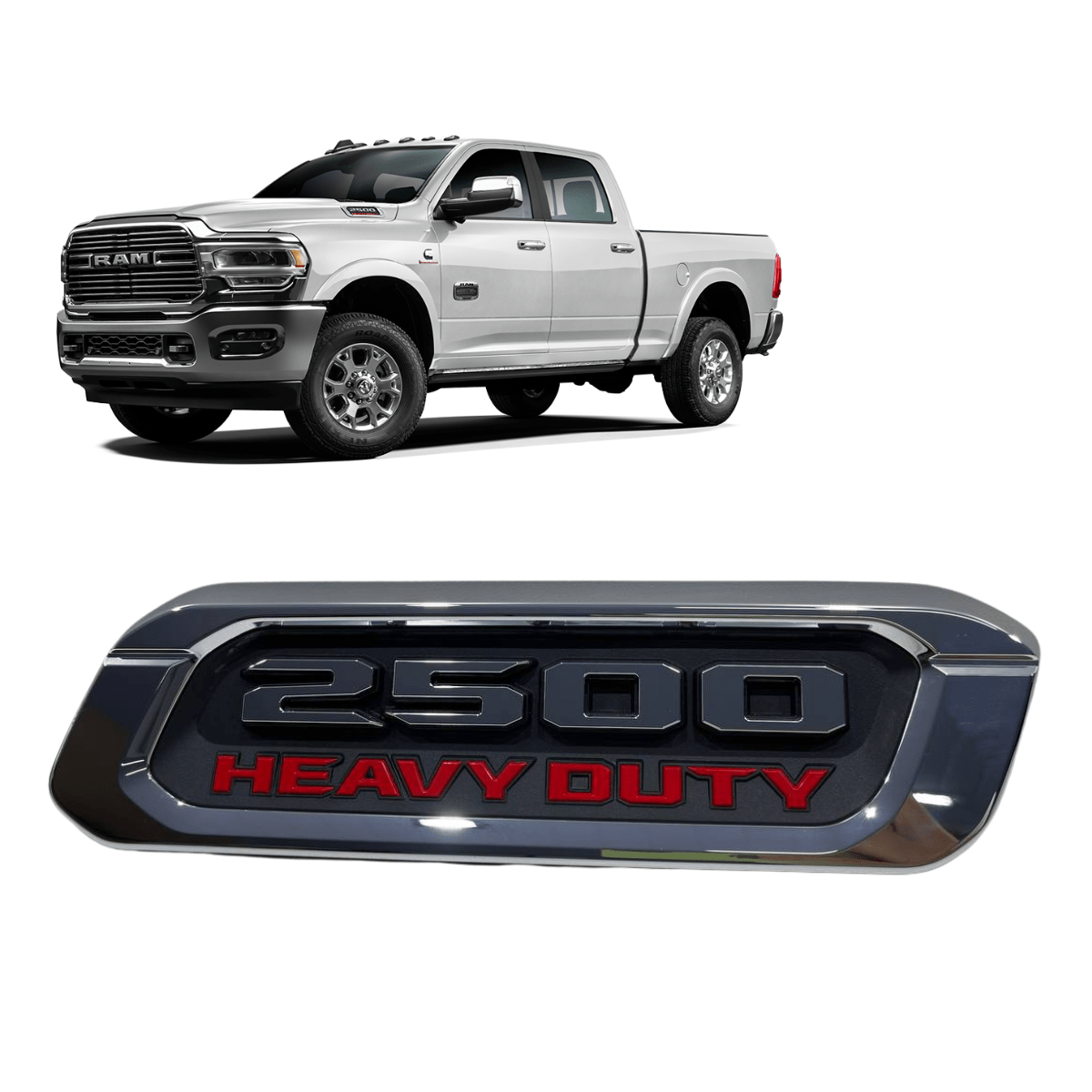Emblema do capô lado direito para Ram 2500 Heavy Duty, produto original, ideal para reposição ou restauração do veículo, mantendo o visual e padrão de fábrica.